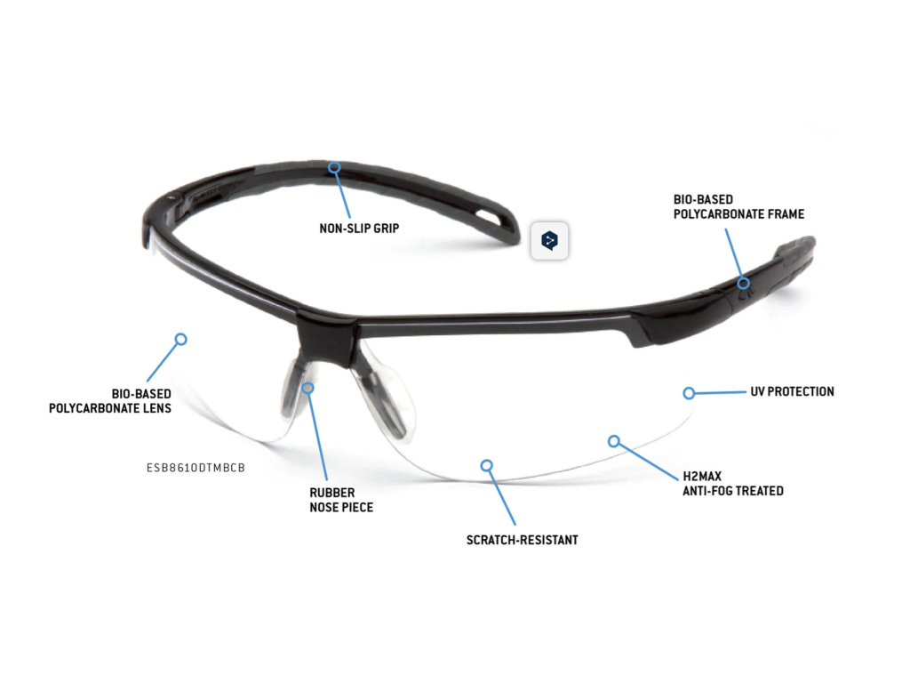 Pyramex Sustainable Ever-Lite® EU jsou moderní ochranné brýle s polorámečkem, které kombinují nízkou hmotnost, pohodlí při celodenním nošení, ochranu proti UV záření a úpravu proti zamlžení H2MAX. Díky použití bio-based polykarbonátu (až 90 %) představují ekologičtější volbu bez kompromisu v bezpečnosti. Splňují EN166 a jsou CE/UKCA certifikované.